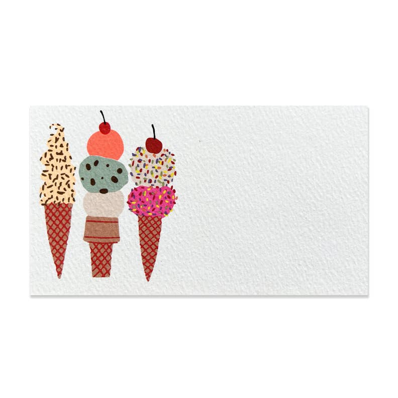 Set of 48 miniature notecards, offset printed on felted paper with ice cream cone art and a blank side for your personal message. Cards measure 2.25x4".