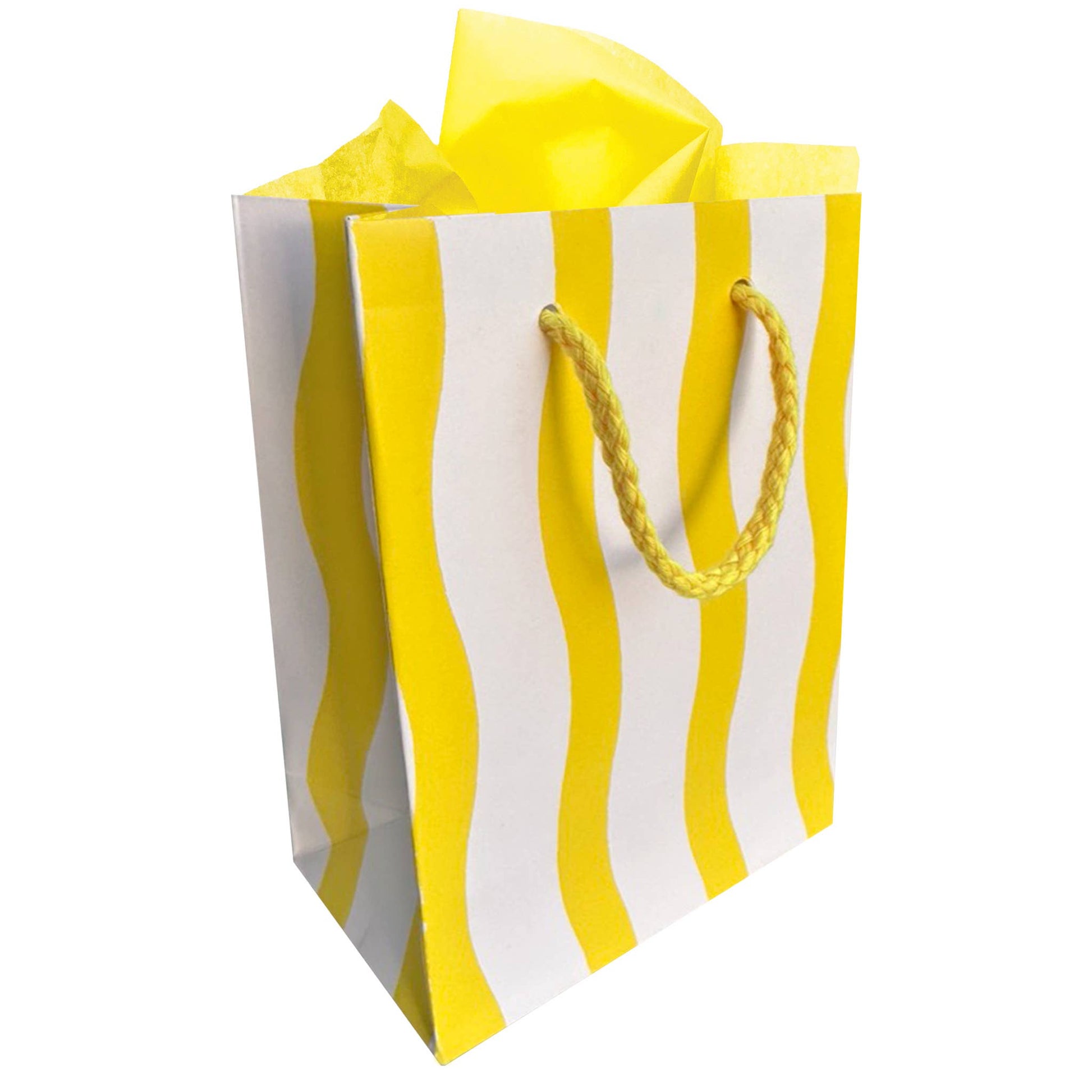 Small gift bags designed by The Social Type, with woven cord handles and printed interiors. Tissue paper not included.