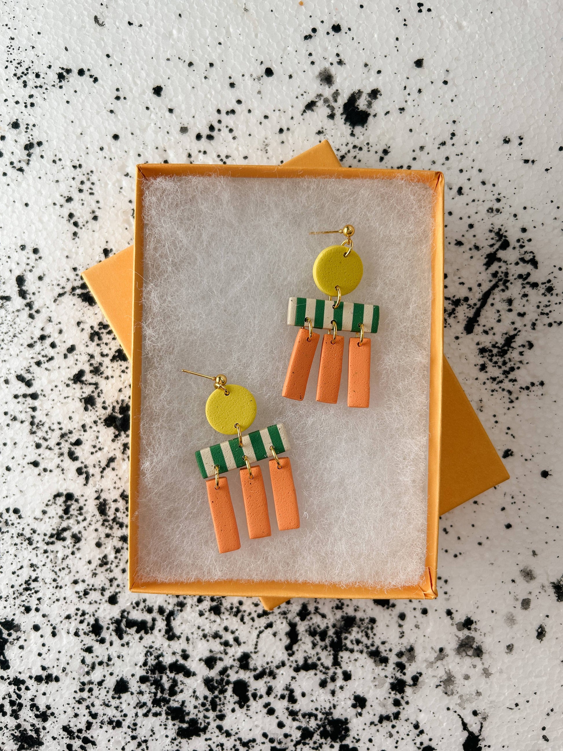 Intricate lightweight statement earrings, handmade from vibrant and durable polymer clay. The perfect accessory to finish any outfit!