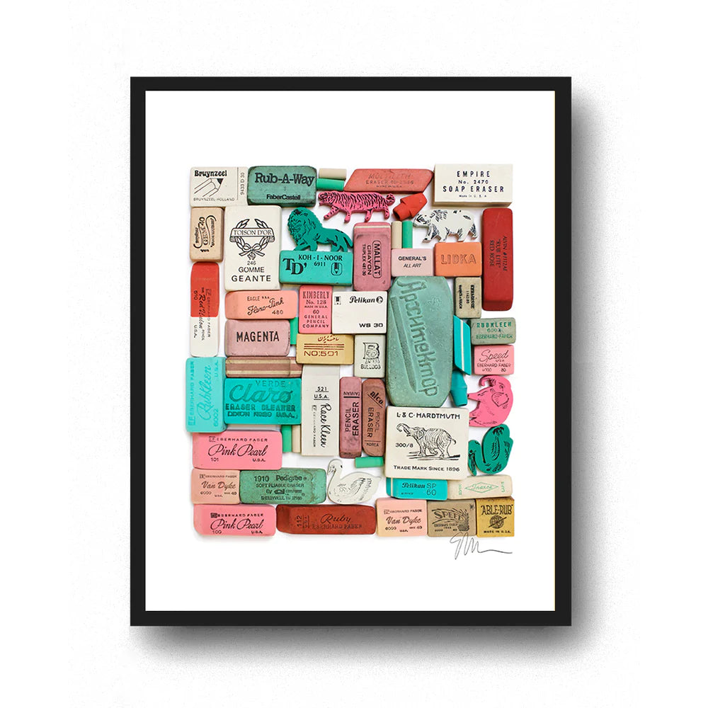 We're particularly taken by the animal erasers...how cool!!! This fun print is a curated collection from Lisa Congdon's erasers.