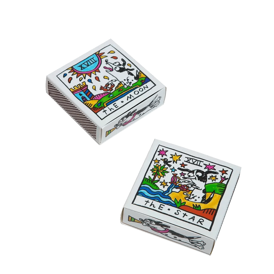 Let there be FIRE! These blue safety matches with red tips come stocked in a reversible, fully-printed drawer box with 2 strike pads. Box measures 3.25x3.25x1".