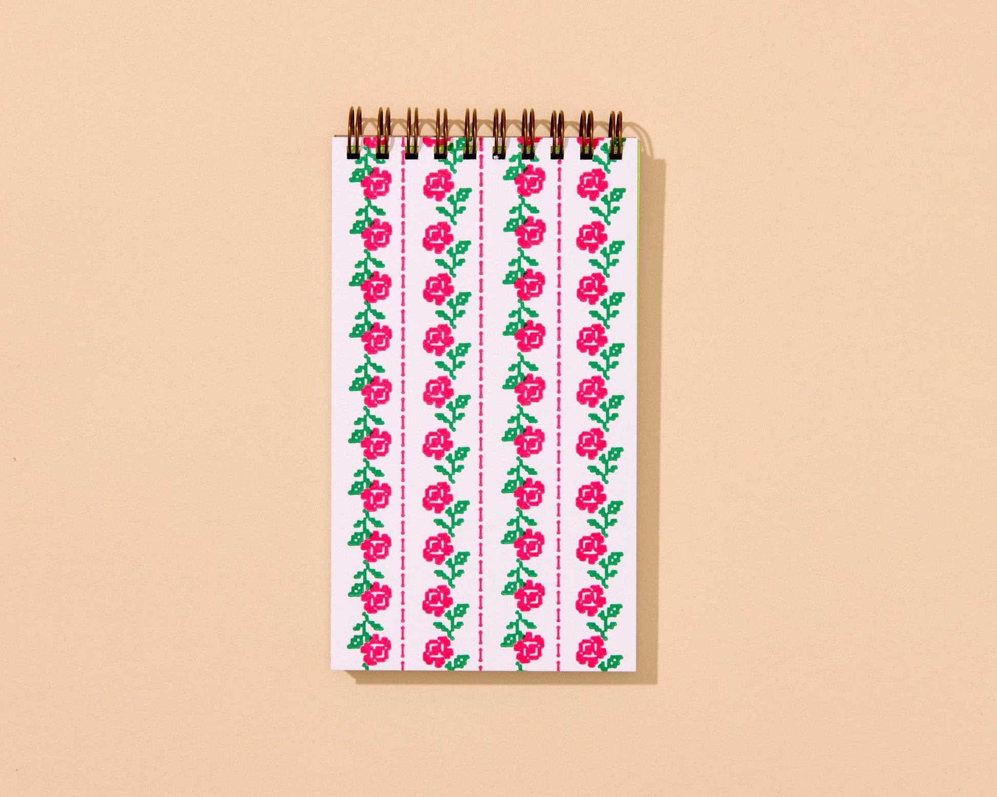 Cross Stitch Rose Letterpress Pocket Spiral Notebook