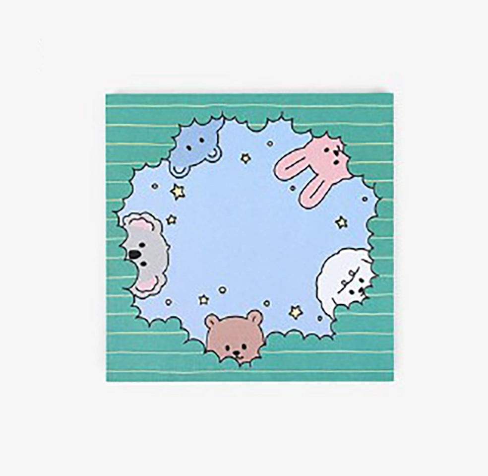 A little illustrated sticky note pad that measures approx. 3.35x3.35" and includes 50 sheets.