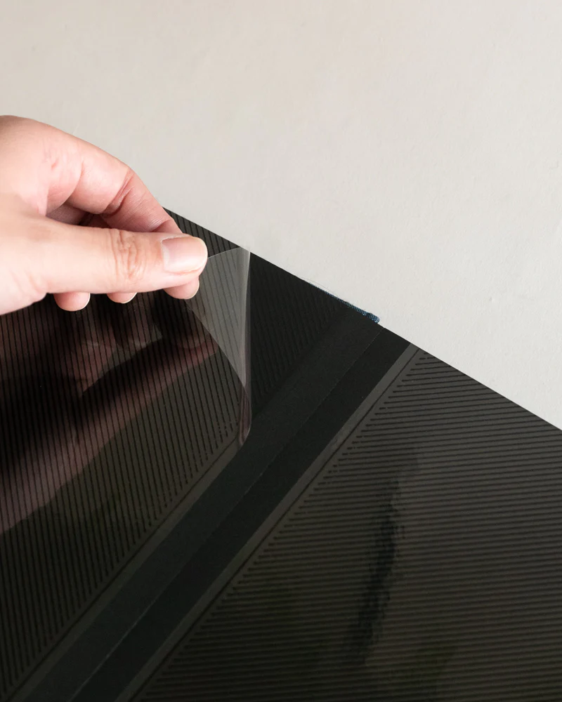 This sleek photo album is size B5 (approx. 7.5x10.25"). It includes 10 black, adhesive pages and holds 40 photos.