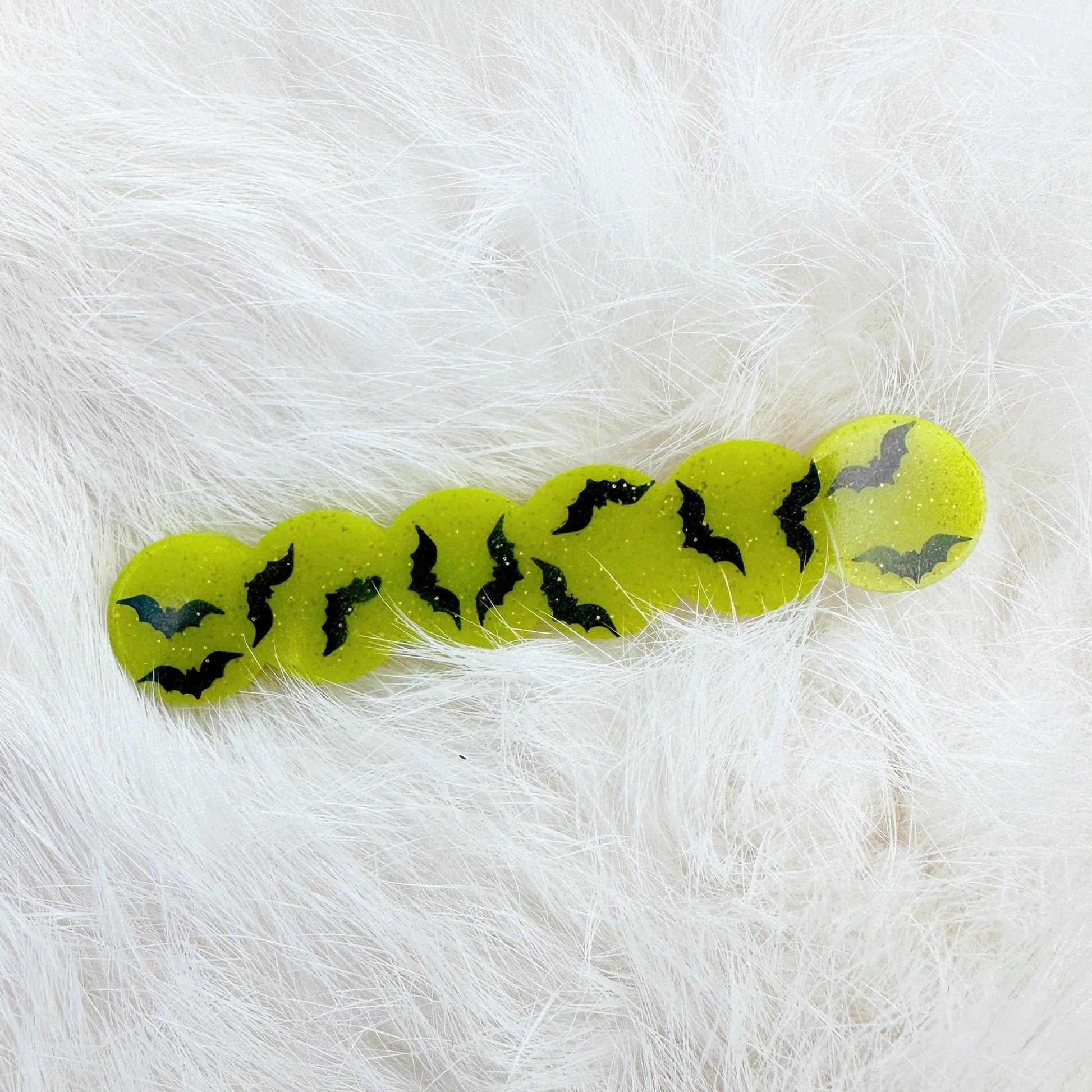 Get your spooky on with this chartreuse green hair clip that glows in the dark!