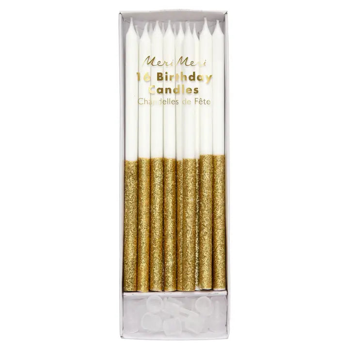 * Gold glitter detail * Plastic holders * Pack of 16 * Product dimensions: Candle height - 5.75 inches