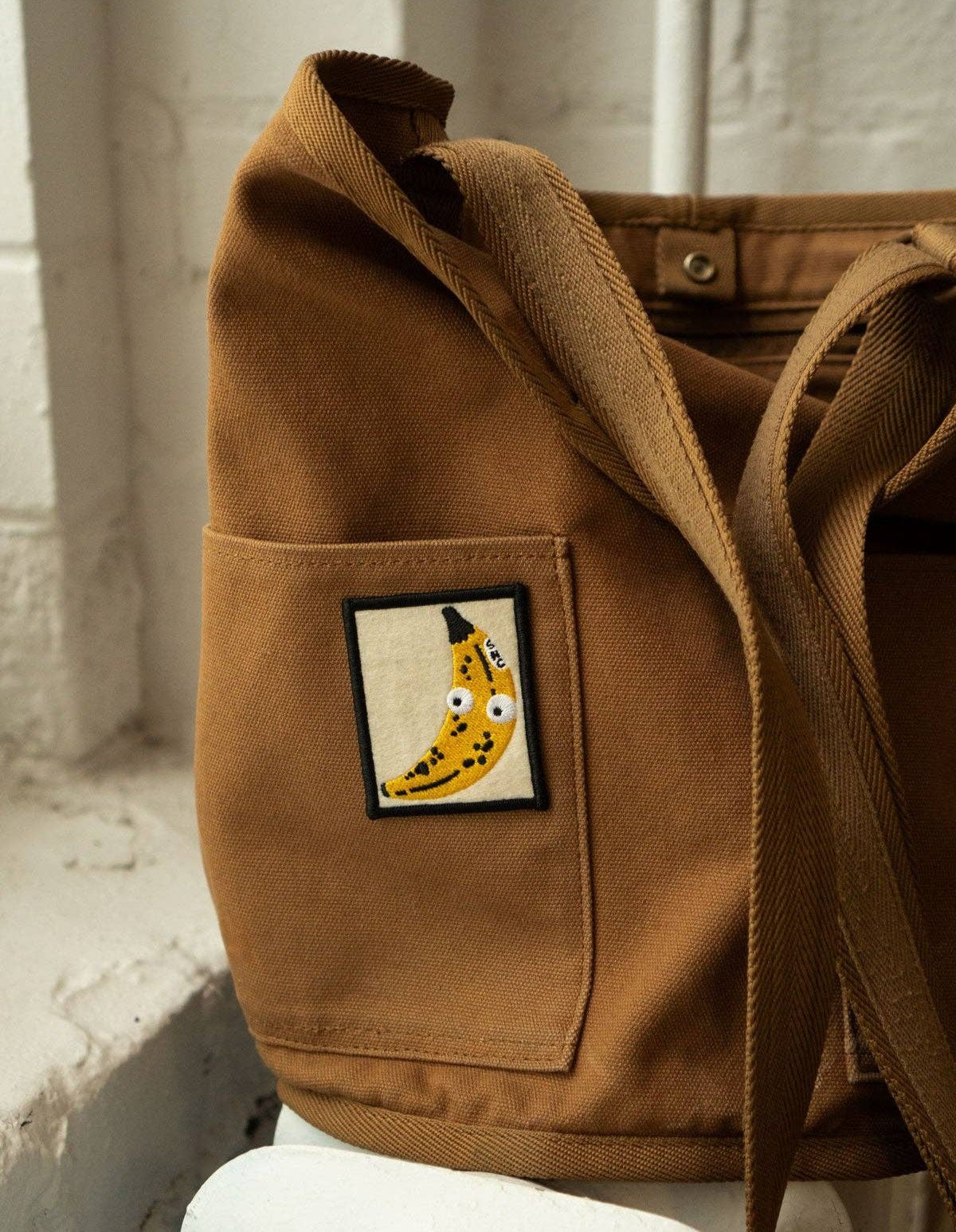 Just a banana with googly eyes, peering out at the world. This is a cute little 2" x 2.5" felt patch with embroidered detail. It has a super sticky adhesive backing. It can be applied to garments, bags, hats, and anything else you can think of that generally accepts stickers! A heads up that felt is not the ideal candidate for items that are frequently washed.