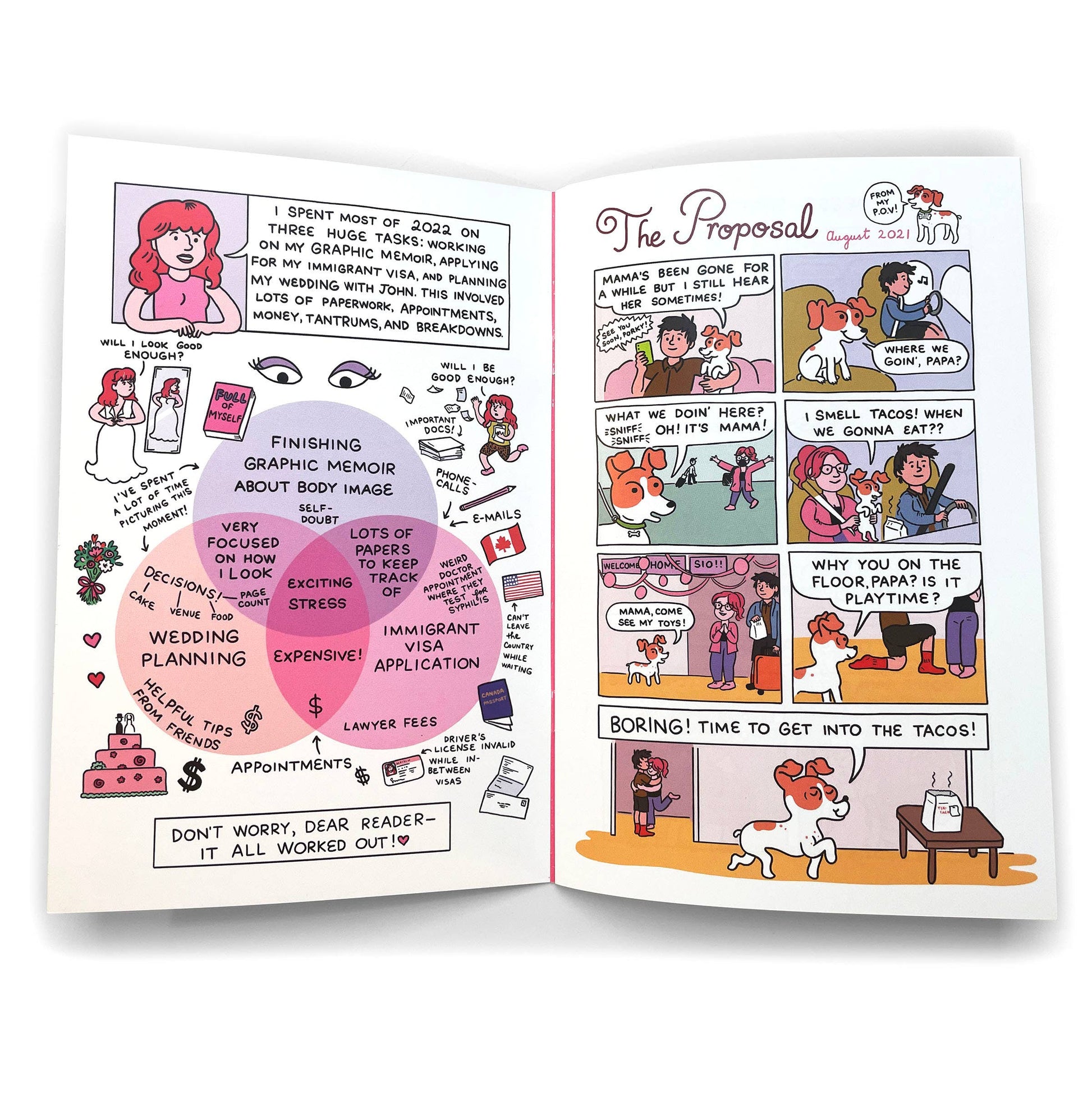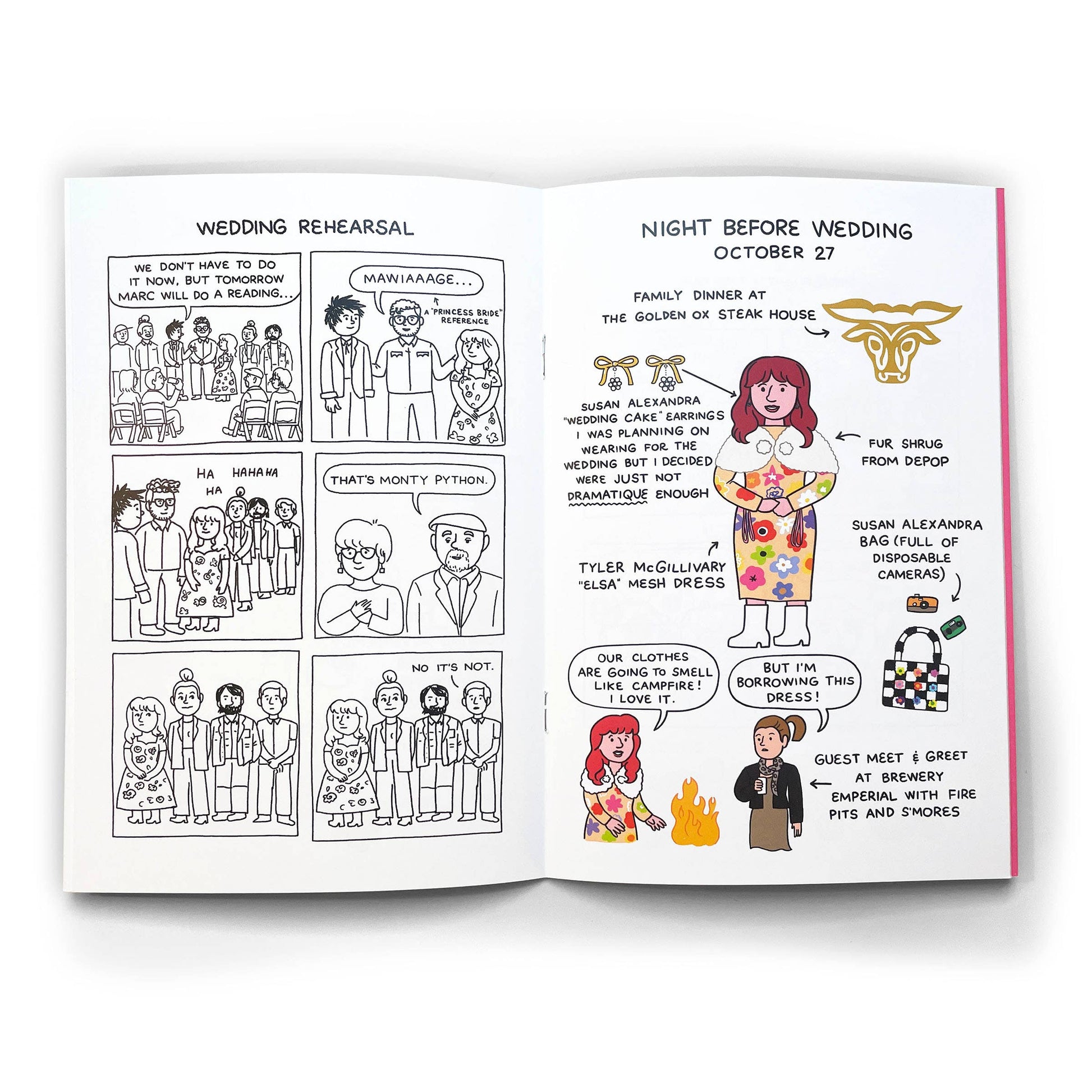 20-page zine of comics and illustrations about wedding planning, family, and fashion.