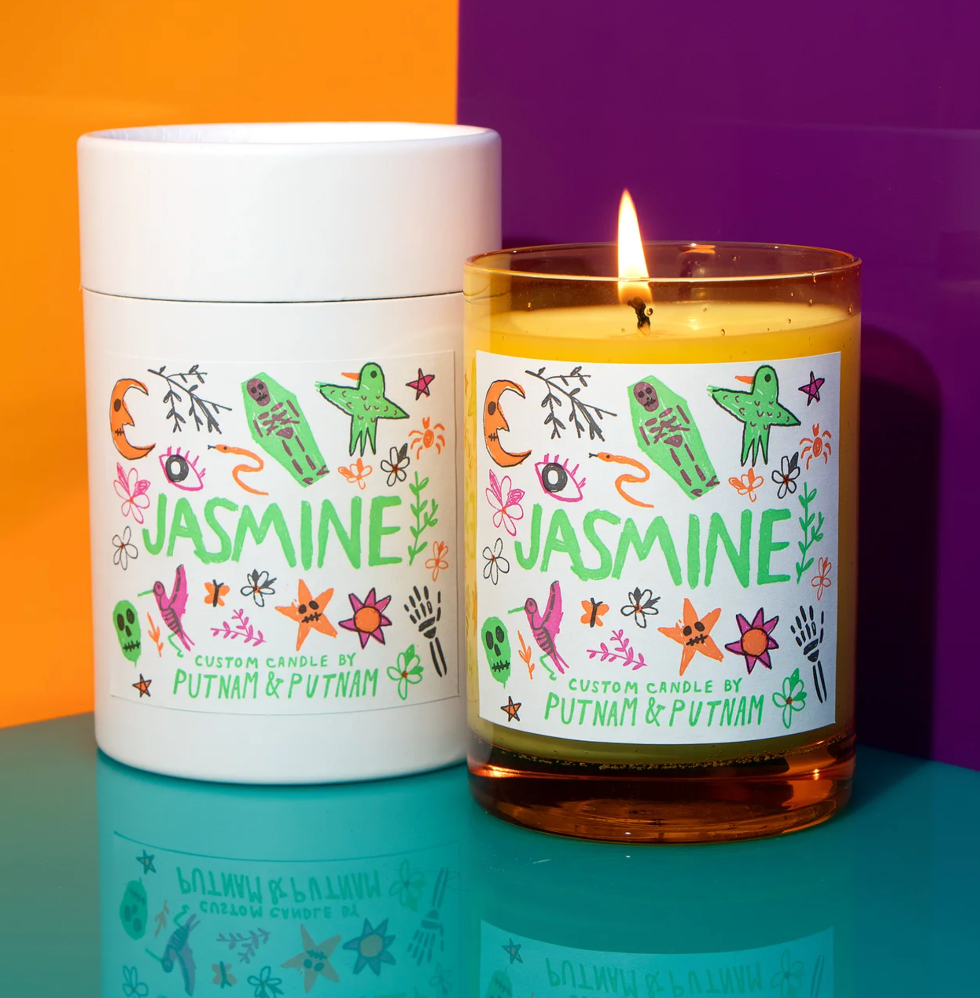 An 18oz candle made from 100% soy wax with a 40 hour burn time. Trim wick before each use. Scent is jasmine.