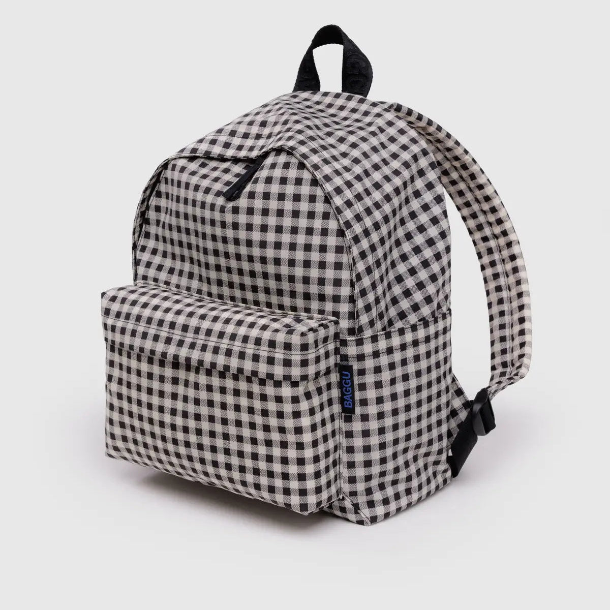 Fits all the essentials for work or school. Interior laptop sleeve with velcro closure that fits 13/14” laptop in puffy case. Lightweight, durable construction with padded, adjustable straps. Machine wash cold.