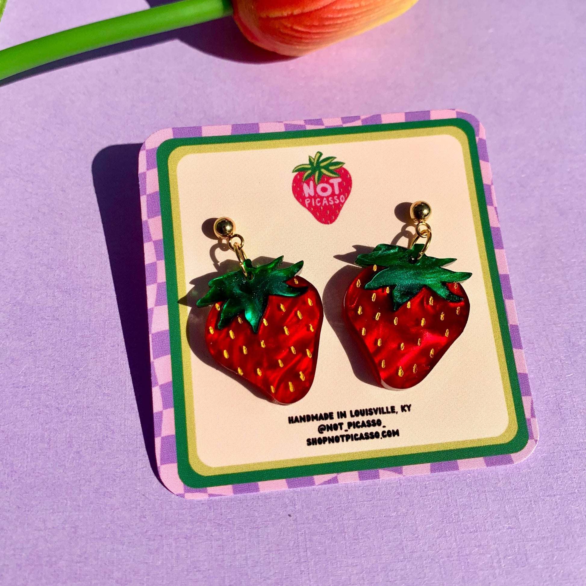 The cutest earrings for those who like a smaller statement. Made from an original design and laser-cut acrylic. Each piece is handmade, so slight differences can be expected. These are finished with hypoallergenic, anti-tarnish gold-plated ball post.
