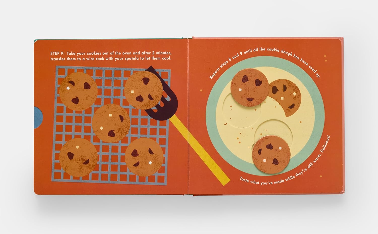 Bake cookies from scratch inside this interactive recipe book for children - sift the flour, whisk the sugar, crack the egg, pour the chocolate chips, and more!