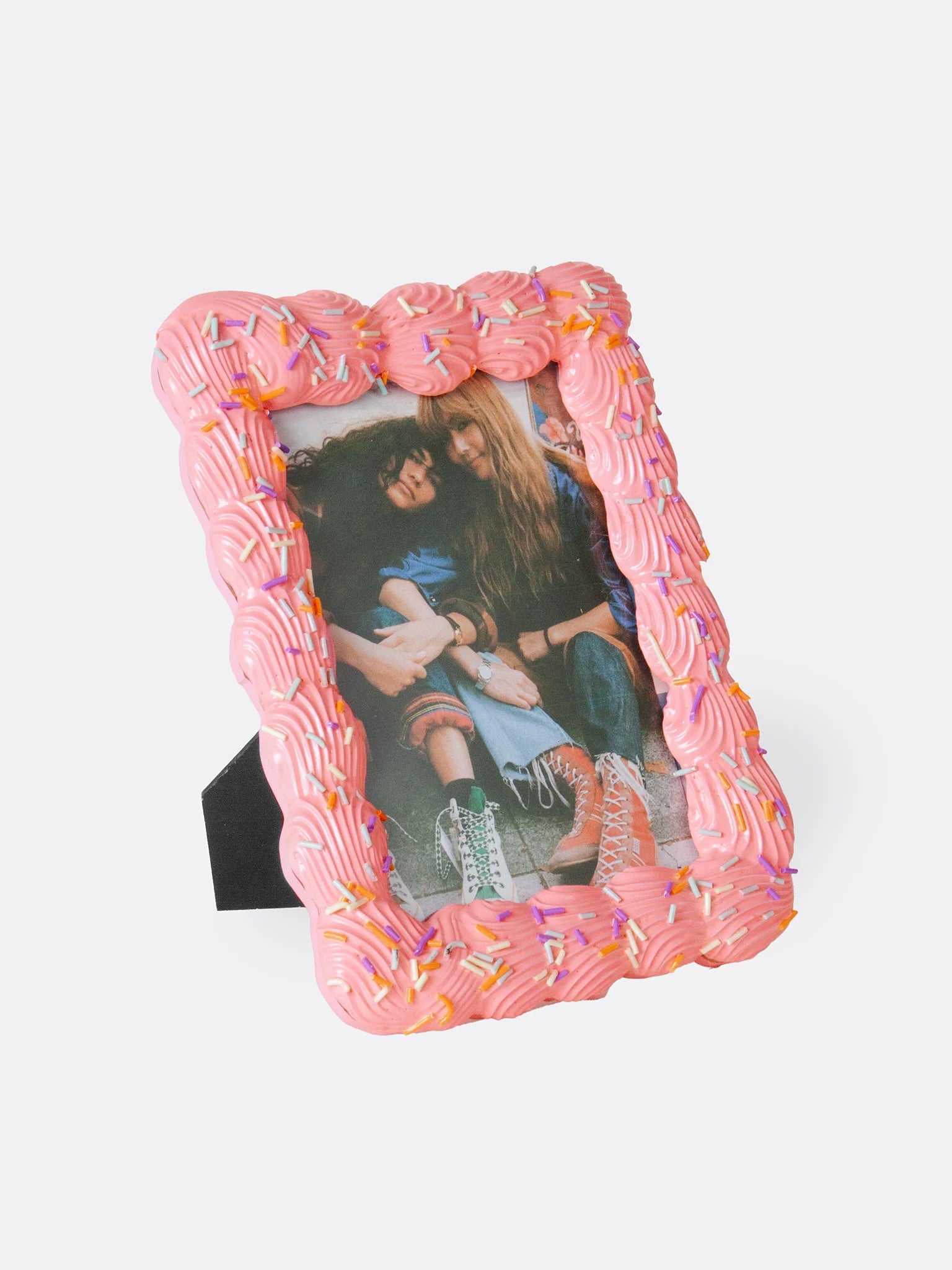 Designed to fit 4x6" photos, crafted with a sweet pink frosting border.