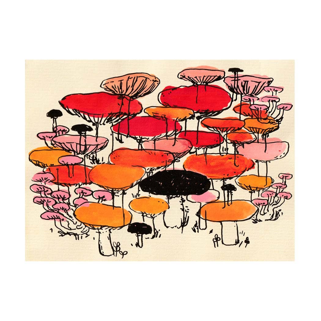 Color print of an original drawing made with watercolor and marker on cream paper. Measures 6x8".