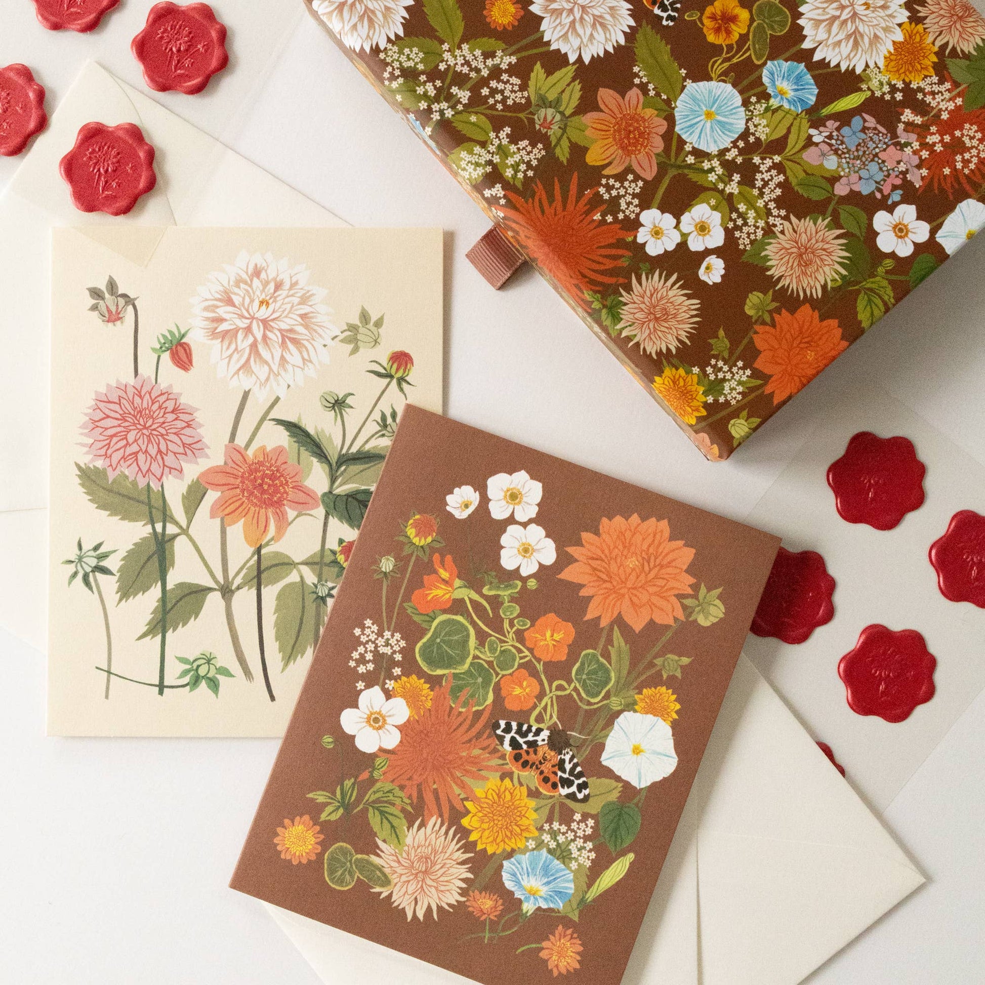 This beautiful keepsake box features 10 premium greeting cards (2 of each design) perfect for any occasion. Each card showcases our signature botanical illustrations inside a magnetic closure box. The versatile box becomes a stylish storage solution for future A2 cards, keeping beautiful greetings always within reach. Cards are blank inside for your personal touch. An exquisite gift or treasured addition to your own stationery collection for life's most meaningful moments. ~Illustrated paper wrapped box ~Includes 10 total cards with 5 designs, 2 of each ~Includes 12 envelopes sticker seals ~Gold foil on cards and box ~Paper color: natural white ~Envelope color: natural white