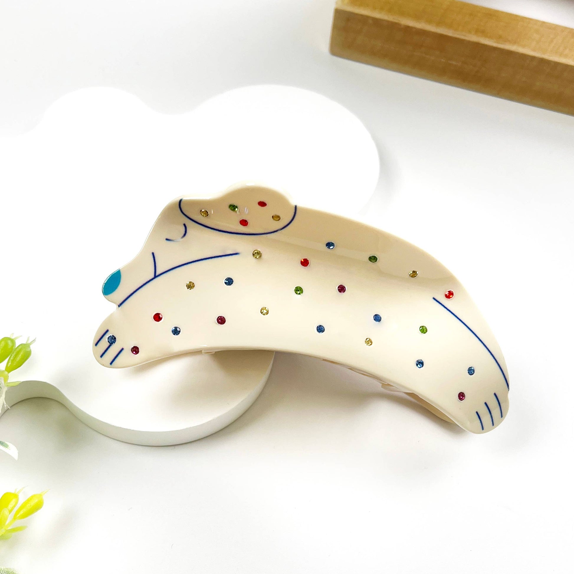 This Spotted Puppy Hair Claw features a cute puppy design. Crafted with attention to detail, our hair claw clip combines style with functionality. The sturdy claw design securely holds your hair in place, making it ideal for a variety of hairstyles and hair types.