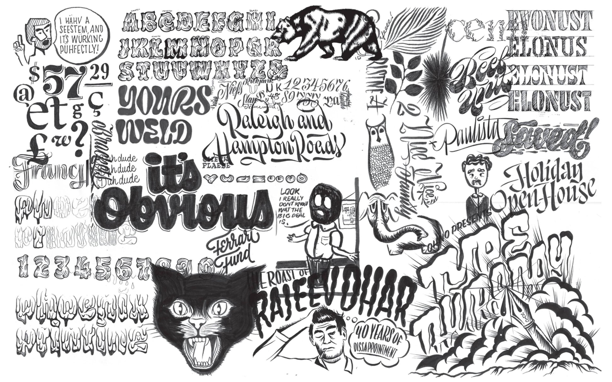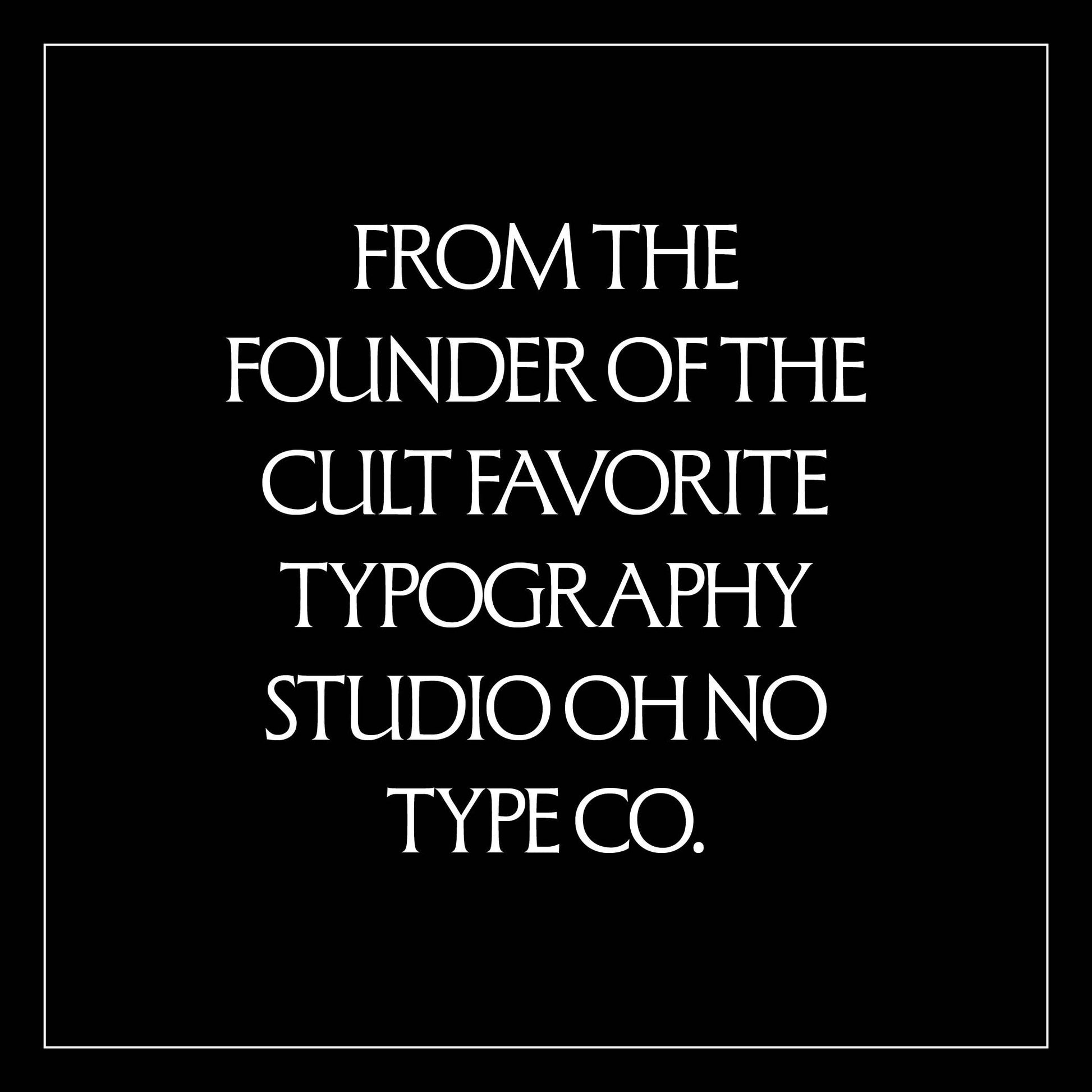 OH no Type Co.'s wildly imaginative fonts—including Beastly, Casserole, Hobeaux, Ohno Fatface, Polymath, Regrets, and Vulf—lend an exuberant, psychedelic flair to packaging, editorial design, gig posters, and apparel, earning the company cult-like status in the graphic design community.