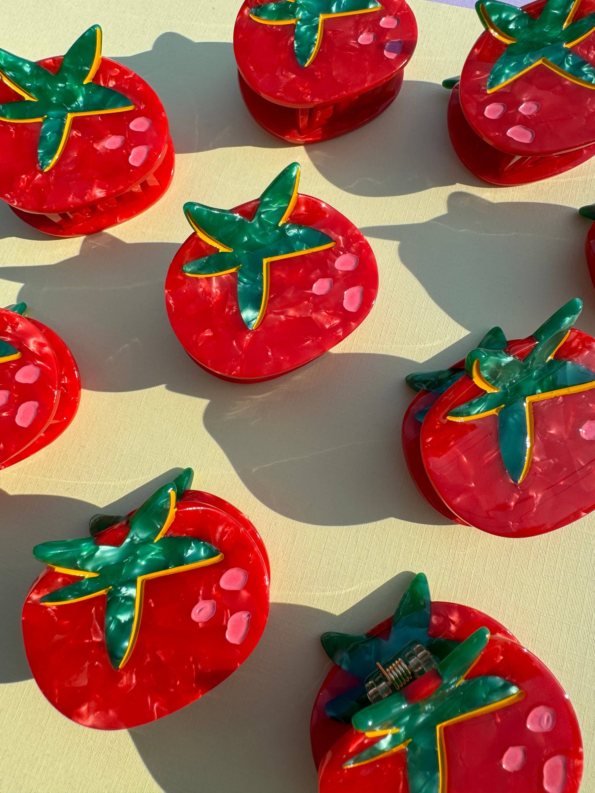 Tomato girlies!! These mini durable hair claws are made from eco-friendly cellulose acetate. They are perfect for adding color to any outfit. They are 1.5" long x 1.75" wide. Designed in Louisville, KY.