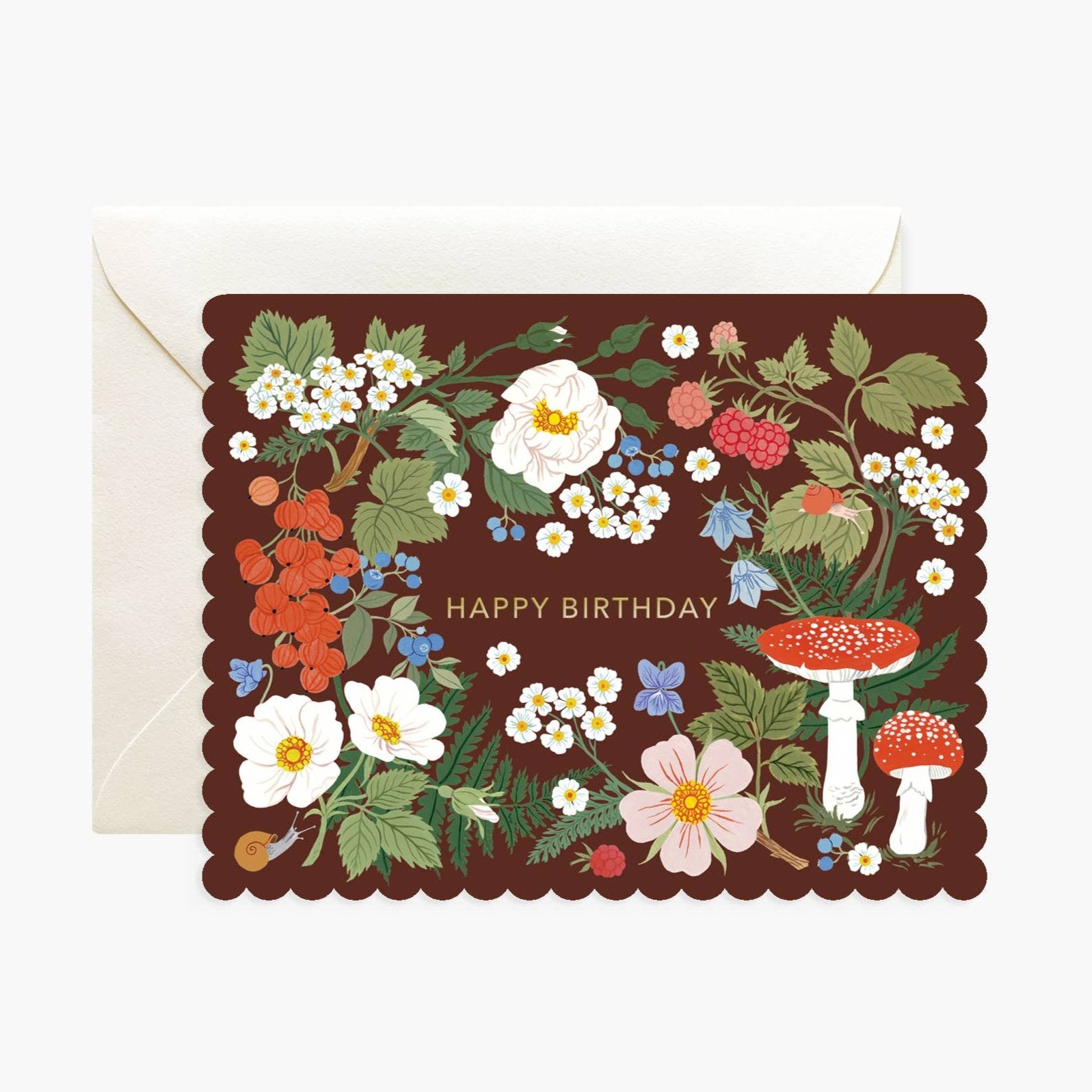 Die-cut and printed on white cardstock with gold foil accents. Blank inside/envelope included. Measures 4.25x5.5".