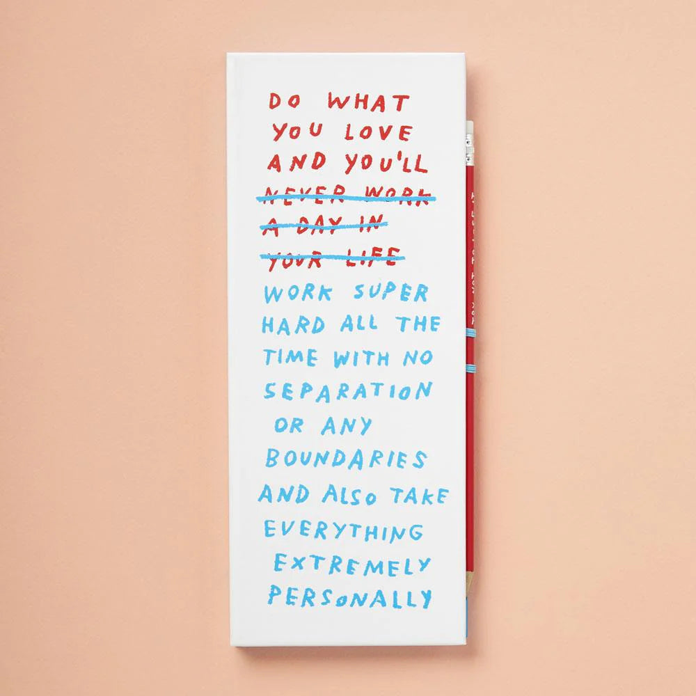 This notepad understands. It understands your hustle, your passions, your exhaustion. Based on Adam J. Kurtz's super-popular print, this list ledger helps you separate work and life in a balanced way.